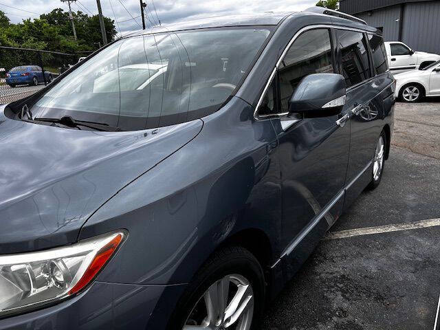 For sale: 2012 Nissan Quest in used condition, featuring a smooth and efficient 3.5L V6 engine paired with a CVT transmission and front-wheel drive (FWD). This family-friendly minivan is perfect for road trips or daily errands, offering ample space, comfort, and reliable performance. The gray exterior adds a sleek, understated look.
